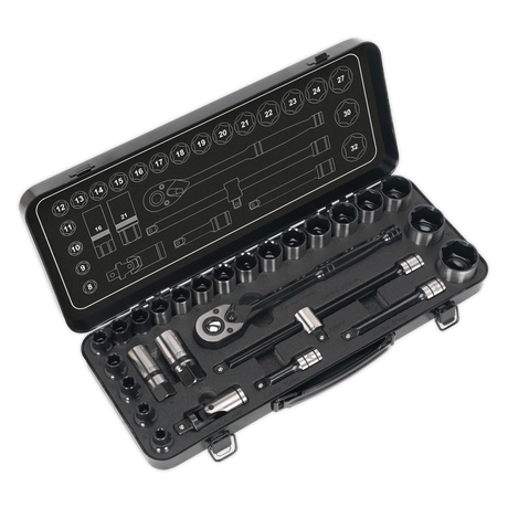 Socket Set 28pc 1/2"Sq Drive 6pt WallDrive® Metric Black Series - AK7972