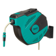 Composite housing with heavy-duty wall mounting swivel bracket. Fitted with 30m Ø13mm PVC garden hose with spray/jet nozzle. Innovative design features three key points. Hose can be extended and stopped at any length. Controlled, slow rewind which, unlike traditional retractable reels, returns the water hose at a safe speed. Auto layering mechanism distributes water hose evenly back into reel housing preventing it from jamming. Supplied with 2m leader hose with quick coupler and tap connector.
