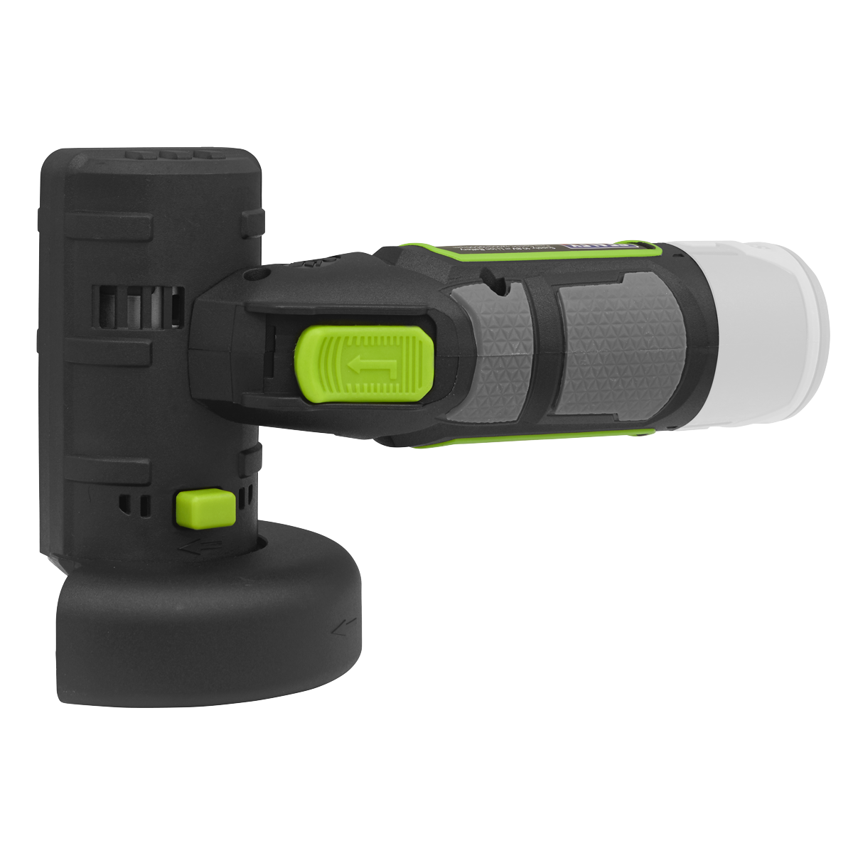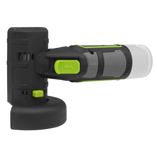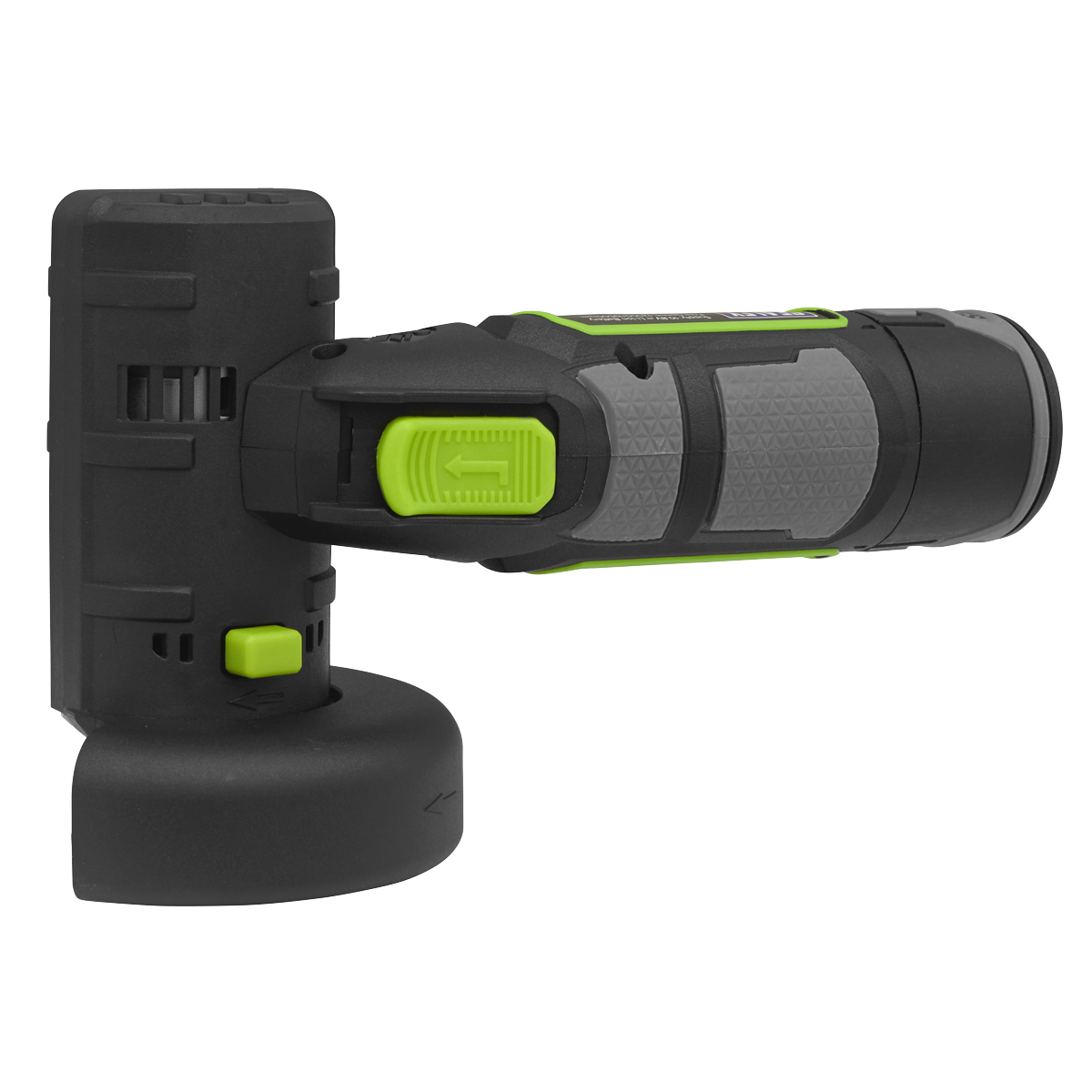 Compact, lightweight cordless angle grinder - body only. Comfortable housing with soft grip to help reduce vibration. Variable speed with six settings. Blade guard that can be adjusted and spindle locking button. LED Battery light indicator. Supplied with hex key for easy blade switching. Disc not included. See www.sealey.co.uk for our range of grinding /cutting discs. Requires compatible 10.8V 2Ah or 4Ah battery and mains charger, sold separately.