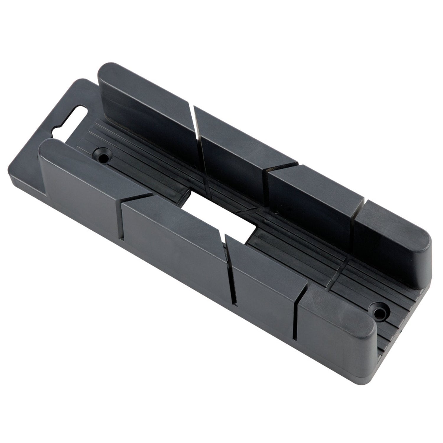 Moulded from tough impact resistant recycled plastic. Two 45° and one 90° guide on both edges and two countersunk holes for fixing to workbench. Ideal for small scale or precision work including model making etc. Sold loose.