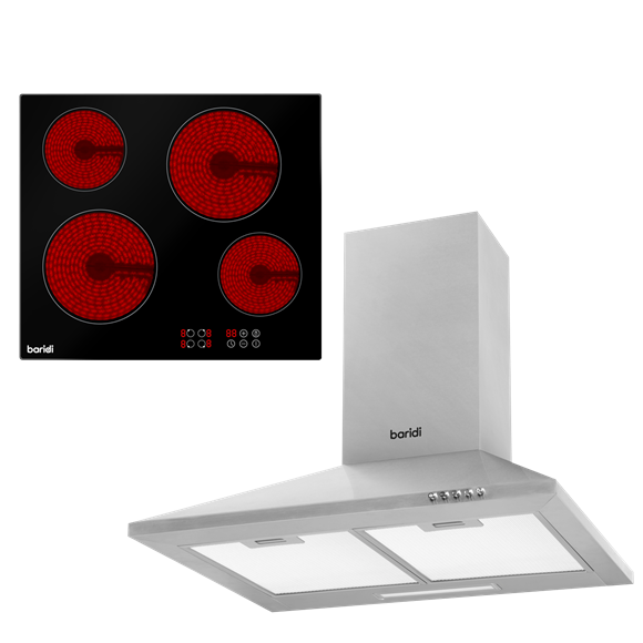 Sealey | Baridi Integrated Ceramic Hob with 4 Cooking Zones 60cm & Cooker Hood with Carbon Filters 60cm - DH181 is backordered and will ship as soon as it is back in stock.