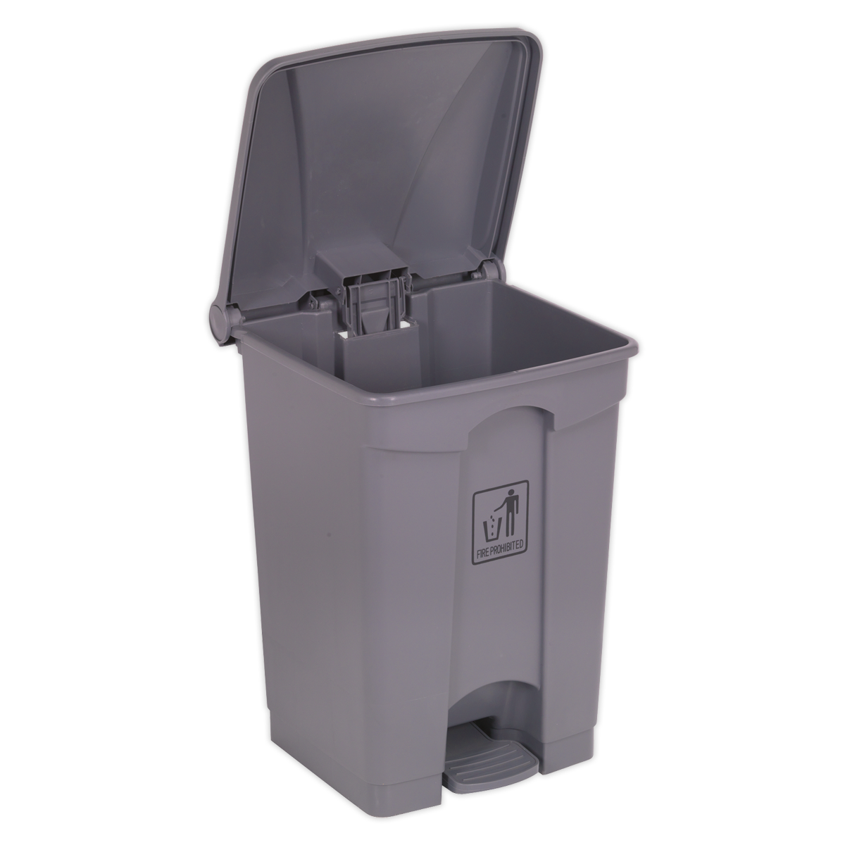 Manufactured from heavy-duty polypropylene. Square design allows unit to sit flush against almost any wall, ideal for where space is limited. Fitted with plastic foot pedal for hands-free operation and carry handle.