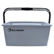 This large paint bucket from Rollingdog can be used on its own or alongside the 18" paint tray/bucket cover (Draper Stock No. 09674). It is made of durable washable plastic. The loading grid features wavy lines designed to evenly load and saturate roller. The bucket has an easy to carry folding handle.