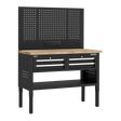 • Perforated back panel designed as a pegboard for quick and easy-access to workshop tools.