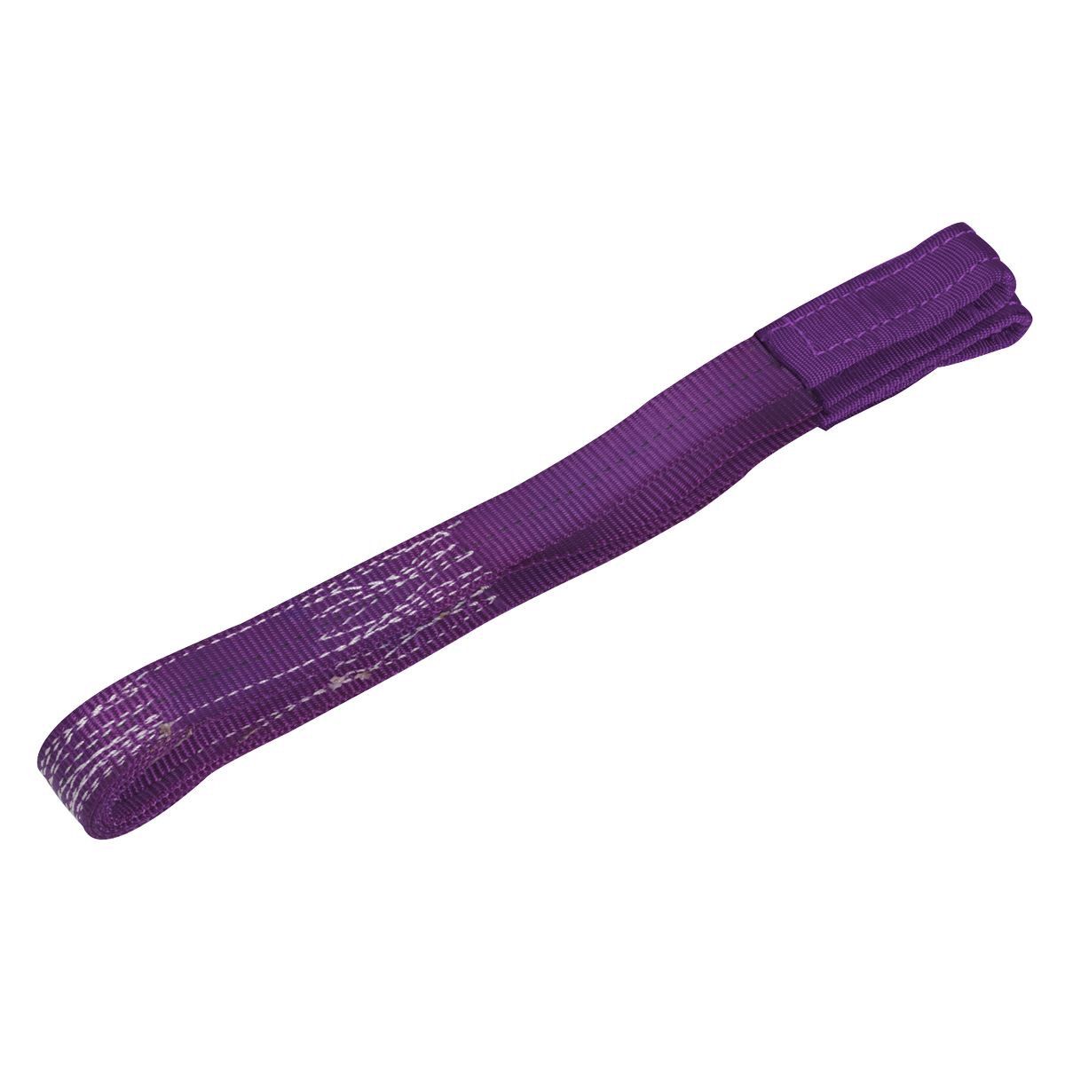 Weight-for-weight, this strap is three to five times stronger than chain and has the advantage that overload can be detected early by the fraying of the strap. Manufactured from 100% high strength polyester with reinforced lifting eyes. Colour-coded according to European standards for identifying capacity. Safe working load ratings quoted are for a load between the loop eyes (U configuration) and a load at one end (straight configuration).