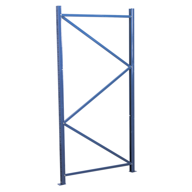 Metal frames consist of uprights joined by spacers and diagonal struts. The uprights are supplied with metal base plates that may be fastened to the floor. Uprights are finished in heavy-duty coating to prevent corrosion and maintain appearance of shelving. Frames supplied individually.