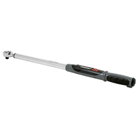 Rugged and resilient digital torque wrench suitable for workshop and factory use. LCD read-out with LED, vibration and audible alarms to indicate achieved and target torque levels. Features angle mode, eliminating the need for angle gauges and protractors providing an accurate and fast way to measure torque plus angle tightening sequences. Will also accumulate angle measurement when multiple turns are required, ideal for use where access is limited. Selectable track or peak modes and up to five user preset memories available. Read-outs in Nm, lb.in, lb.ft, kgf.m or degrees. Reversible Chrome Vanadium 72-tooth ratchet allows torque reading in either direction. Accurate to ±2% of wrench’s stated capacity. Supplied with test certificate and storage case.