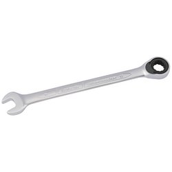 Open end set at 15°. ELO-Drive ring end manufactured with 72 teeth ratcheting mechanism - only 5° movement required to turn fastener, especially useful in confined spaces. Forged from chrome vanadium steel, hardened, tempered and matt chrome plated.