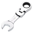 These Draper HI-TORQ® metric stubby flexible head ratchet combination spanners are forged from chrome vanadium steel that is hardened, tempered, fully polished and mirror chrome plated for corrosion protection. The open end is offset at 15°. The 180° flex head ring end has a 90-tooth ratchet mechanism allowing 4° movement, enabling use in tight spaces. The 12-point HI-TORQ® delivers maximum leverage by transferring torque to the flats and preventing slipping or damage to the fastener.