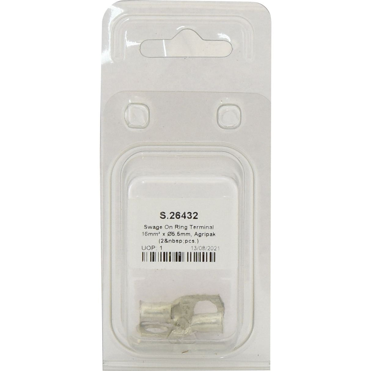 Swage On Ring Terminal 16mm² x Ø5.5mm, Agripak (2 pcs.) | Sparex Part No.S.26432
