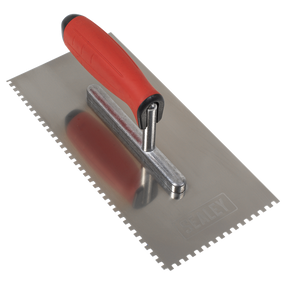 Designed for applying and spreading tile adhesives, hardwood floor applications and tile thinset mortar. A notched tile trowel also acts as a metered dispensing system, delivering just the right amount of mortar for the tile. Different sized notches will deliver the desired amount of adhesive for the job in hand. Rubber soft grip, ergonomic two-component handle for prolonged periods of work in comfort. Stainless steel, high quality, highly durable and rust resistant. Precision made blade. Well balanced and flexible. Aluminium foot for lightweight strength and durability. Ideal for brickwork and plasterwork with mortar, putty, plaster, and adhesives. Part of the Sealey wide range of trowels, floats and building equipment.