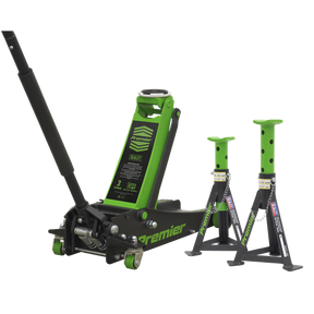 Sealey | Premier Trolley Jack 3 Tonne & Axle Stands (Pair) 3 Tonne per Stand Combo - 3040AGCOMBO1 46.12 kg