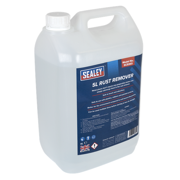- Effortlessly restore metal pieces with Sealey Rust Remover 5L (Model No. SCS203) – no preparation needed, just submerge for effective rust removal.
