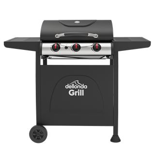 Gas BBQ with three stainless steel burners. Built-in thermometer enables you to easily keep track of your cooking temperature. Piezo ignition ensures a safe and easy start-up every time. High quality steel cooking grates with a gloss enamel coating. Features two side shelves giving extra room for preparation. Warming rack frees up space on the grill whilst keeping your food warm after cooking. Supplied with regulator and hose assembly for use with propane patio gas bottles. Features two 6" polyurethane wheels for easy manoeuvrability. Product Size (W x D x H): 1220 x 570 x 980mm. Some simple assembly is required. Dellonda BBQ Cover Model No. DG19 (supplied separately) is a perfect fit for this BBQ.
