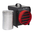 • Electric fan heater with ducting for industrial applications.