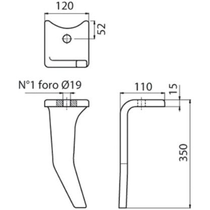 Power Harrow Blade 120x15x350mm RH. Hole centres: Hole Ø 19mm. Replacement for Amazone. To fit as: 6147300 | Sparex Part No.S.78616 3.06 kg