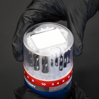 • DISPLAY BOX - Assorted countertop display box featuring six 18-piece combination drill bit sets.