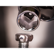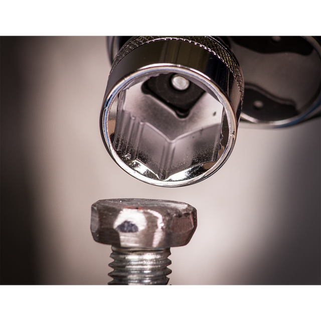 Manufactured from hardened and tempered high grade Chrome Vanadium 6142 steel. Fully polished mirror finish for resistance to corrosion. Feature specially machined flutes in the walls of the socket which enable use on up to 85% rounded fasteners. This not only provides added strength but also prevents damage to worn or rusted fixings. Includes knurled ring for extra grip with oily fingers. Supplied on socket rail.