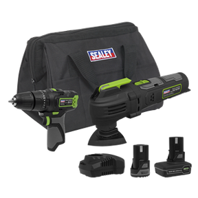 Sealey | 2 x SV10.8 Series Cordless Combi Drill & Multi-Tool Kit 10.8V - 2 Batteries - CP108VCOMBO5 7.27 kg