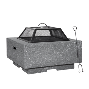 The fire pit is made from MgO (Magnesium Oxide), a weather resistant material which gives you a modern concrete look for your garden. It is built to withstand the elements as it is rust resistant, UV resistant and frost resistant. Being made of MgO instead of a more traditional metal material this fire pit is much lighter and easier to move around your garden and comes with handle holes. Use like a BBQ, place your food on the chrome grill rack above the fire logs and get ready for quick tasty food. Suitable for use with Charcoal or Firewood. Supplied with a safety mesh which prevents sparks or debris from escaping. The included poker can be used to ignite the flame and remove the mesh cover keeping you safe. Assembled Dimensions (W x D x H): 64 x 64 x 45cm.
