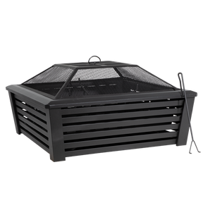 Contemporary style square fire pit is perfect for relaxing outdoors with family and friends. Manufactured from durable steel (0.8mm) with a high temperature black finish. Includes mesh safety screen to prevent embers and sparks flying. Suitable for use with untreated wood and logs. Supplied with fire poker. Some simple assembly required.