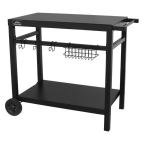 Portable trolley for Dellonda Plancha Model No's DG21, DG22 & DG23. Trolley can also be used as a side table for your barbecue. Features two 6" PE wheels and side handle for easy manoeuvrability. Supplied with powder coated steel basket and hanging hooks to store all your barbecue utensils. Suitable for use with gas bottles up to 13kg. Some simple assembly required.