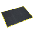 Hard-wearing EVA foam anti-slip matting suitable for use in the workshop and machine room. Provides fatigue relief and insulation from cold concrete floors. All tiles can be interlocked to make one bordered area, alternatively can be laid out as three separate bordered areas of two tiles each. The hi-vis border increases visibility, improving safety.