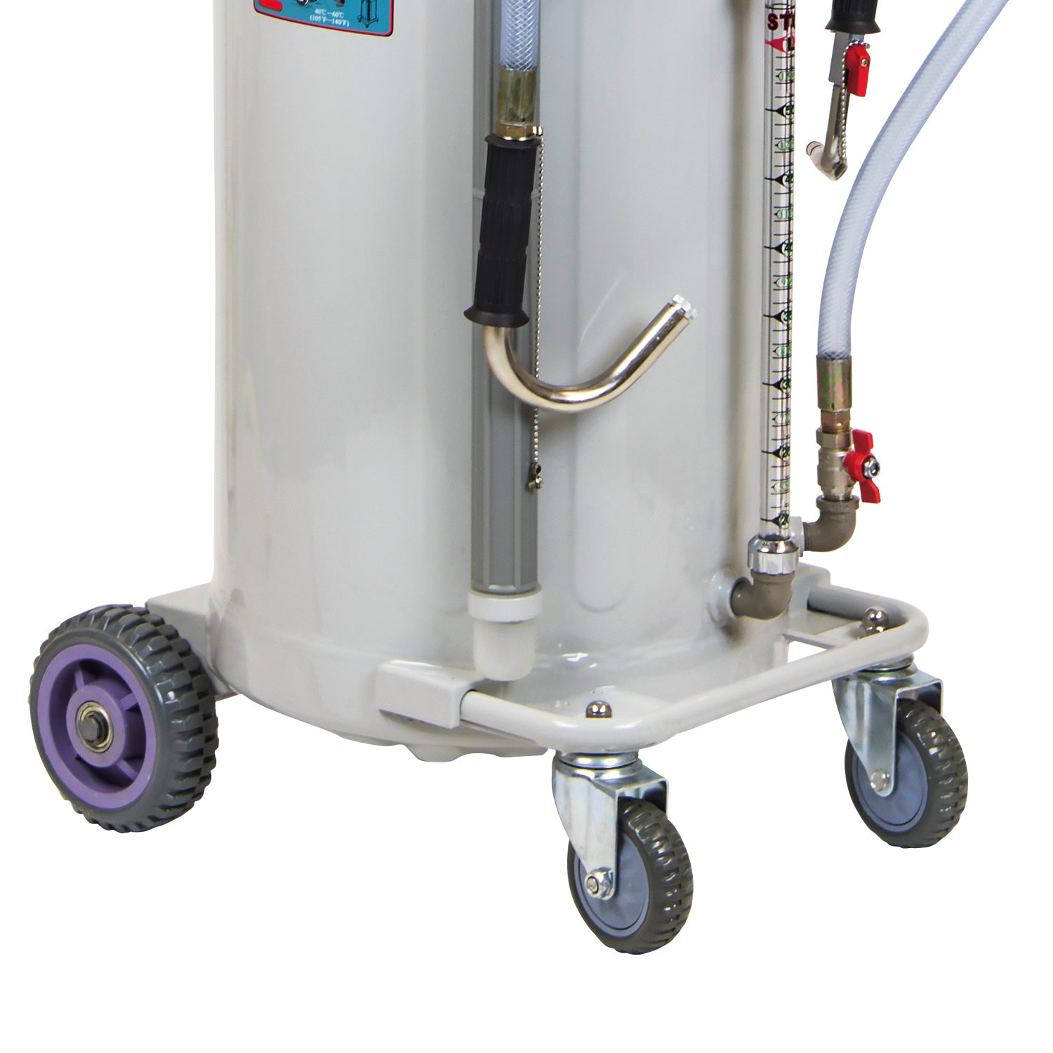 Wheel and castor-mounted, the drainer offers easy mobility and storage, and includes six suction tubes for compatibility with a wide range of engines and oil systems. An oil level indicator tube on the reservoir provides clear monitoring of collected waste oil.