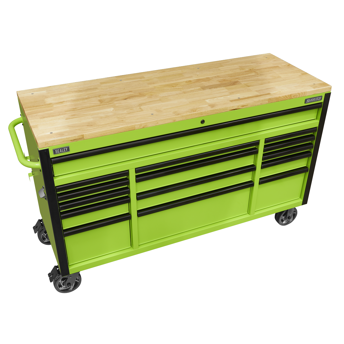 - Features 15 full-height rear locking mechanism soft-close drawers, providing secure storage and easy access to tools and supplies.