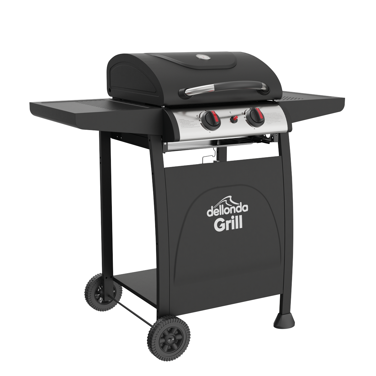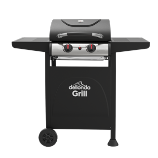 Gas BBQ with two stainless steel burners. Built-in thermometer enables you to easily keep track of your cooking temperature. Piezo ignition ensures a safe and easy start-up every time. High quality steel cooking grates with a gloss enamel coating. Features two side shelves giving extra room for preparation. Warming rack frees up space on the grill whilst keeping your food warm after cooking. Supplied with regulator and hose assembly for use with propane patio gas bottles. Features two 6" polyurethane wheels for easy manoeuvrability. Product Dimensions (W x D x H): 1100 x 570 x 980mm. Some simple assembly is required. Dellonda BBQ Cover Model No. DG18 (supplied separately) is a perfect fit for this BBQ.