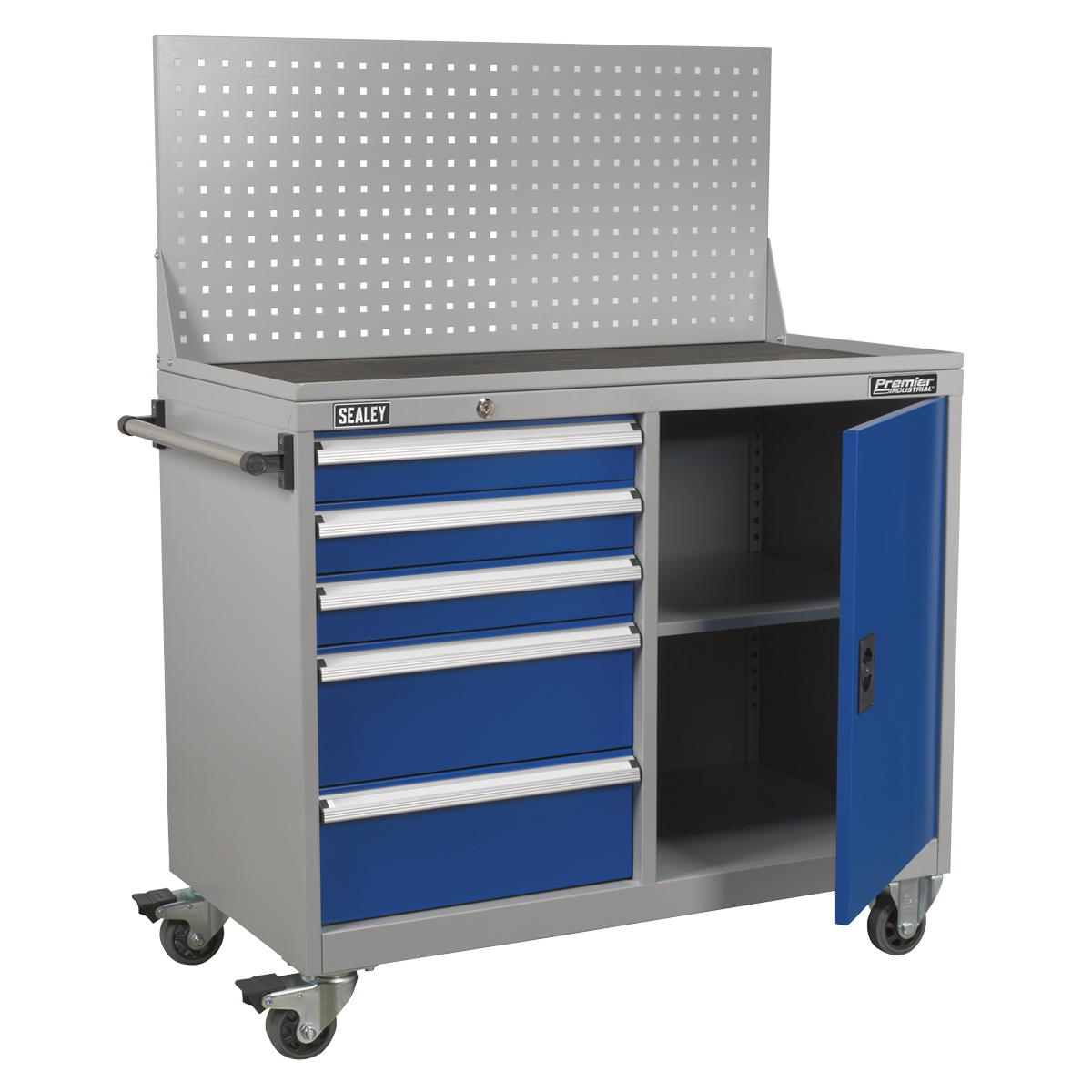 • Perforated rear panel ideal for hanging frequently used tools so they are at hand when needed.