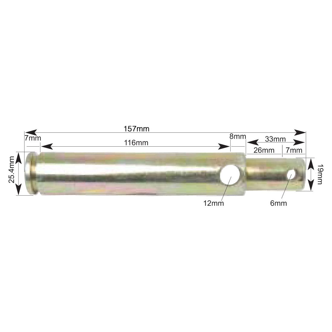 Pin Ø: 19mm, Working length:116mm, Overall length: 157mm, Head Ø: 25.4mm, Hole Ø: 12mm