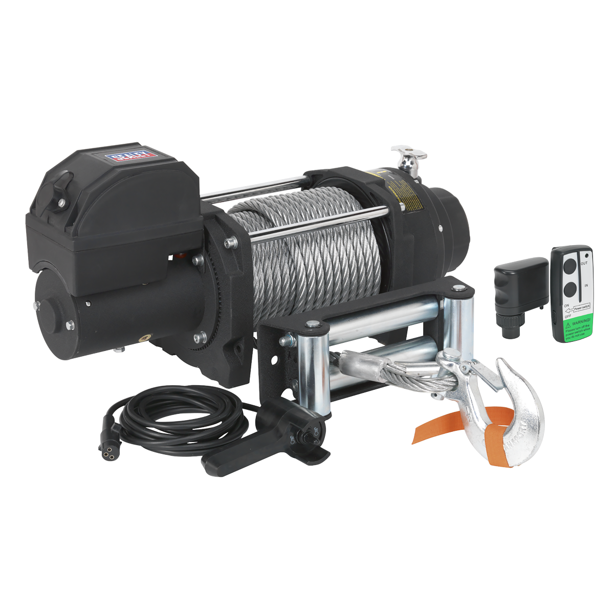 This industrial recovery winch is designed and built for breakdown recovery and off-road use. Features 12V DC heavy-duty motor with 4-stage planetary gears, using oversized components for greater torque, plus an automatic 'in drum' brake. Winch has weather sealed solenoids and ergonomic 'lift & turn' free spool clutch. Supplied with wire rope, latched hook, 4-way roller fairlead for smooth and even distribution of cable onto drum and plug-in handheld controller as standard. Ideal for flatbed pick-up or other recovery trucks.