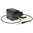 60W Soldering station with rapid heat up. MCU Controlled temperature calibration. LCD Display screen showing current temperature. Maintains temperatures between 50-480°C. Supplied with soldering sponge and soldering iron stand.