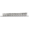 - Conveniently supplied on a metal socket rail, promoting organized storage and easy access to tools.