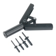 Suitable for applying plastic rivets found mainly in automotive applications. Designed for one-handed operation and one-stroke setting. Allows access in hard-to-reach areas not accessible by conventional lever type tools. Universal nose piece suitable for all sizes of plastic rivets. Supplied with four packs of plastic rivets.