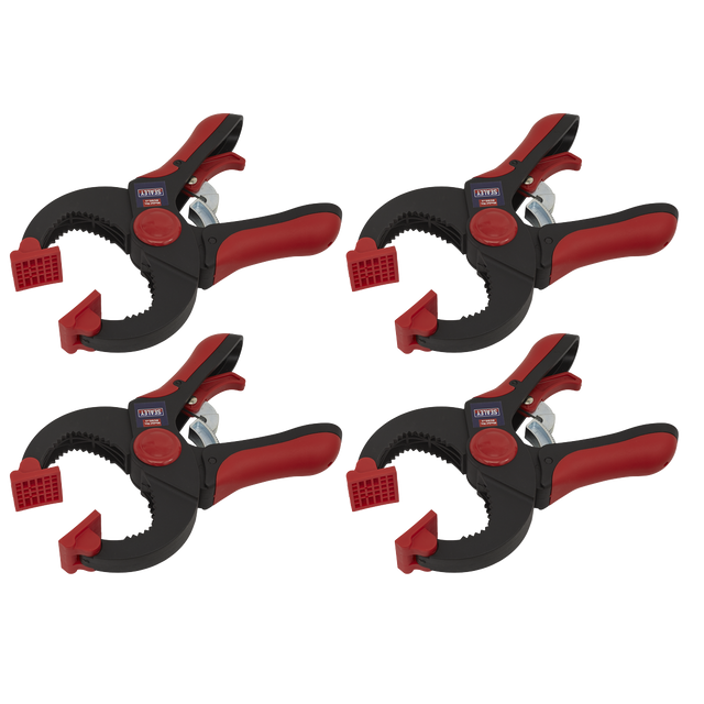 • Pack of four quick ratcheting clamps with easy release trigger.