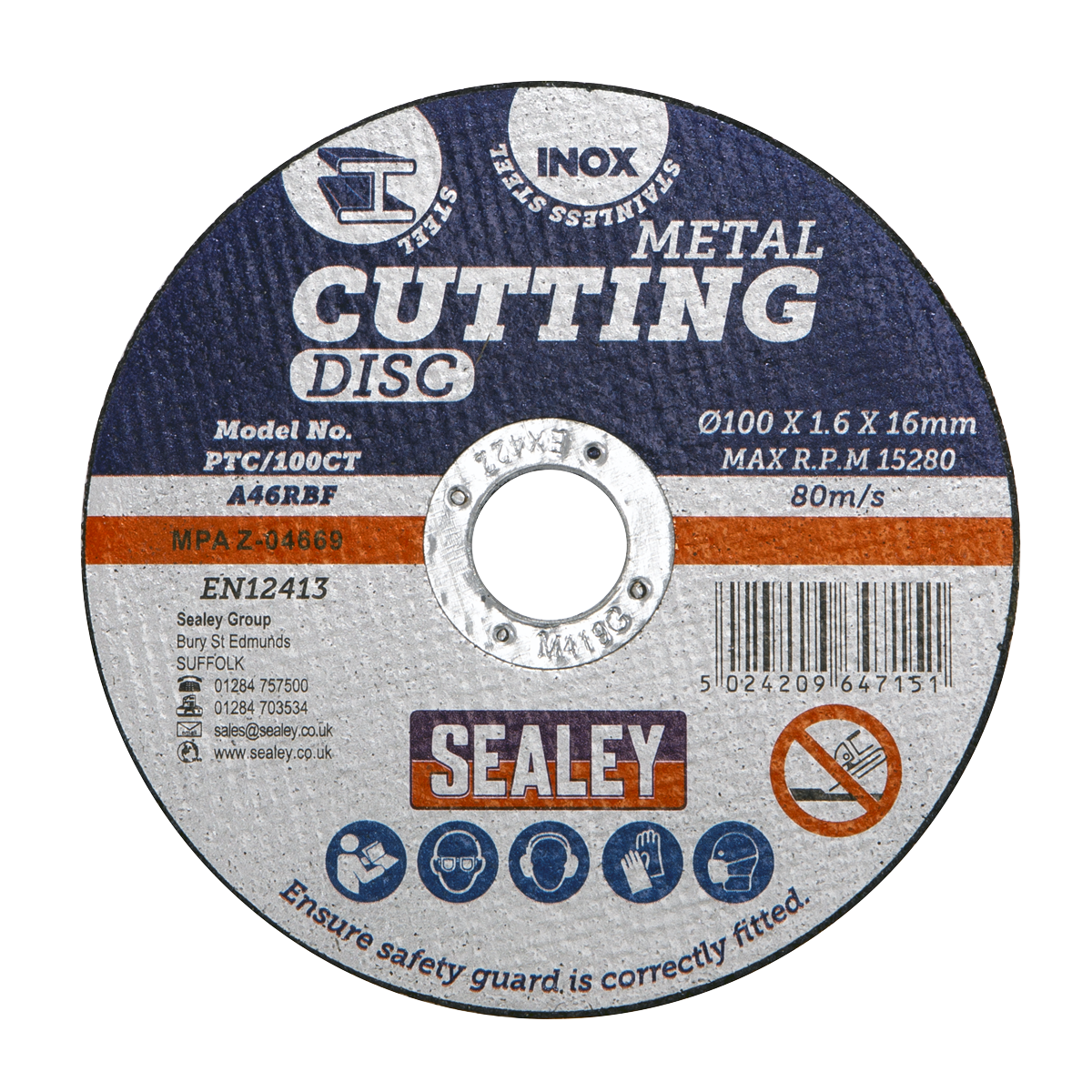 • General-purpose flat cutting disc recommended for use with Sealey and other leading makes of grinding and cutting power tools.