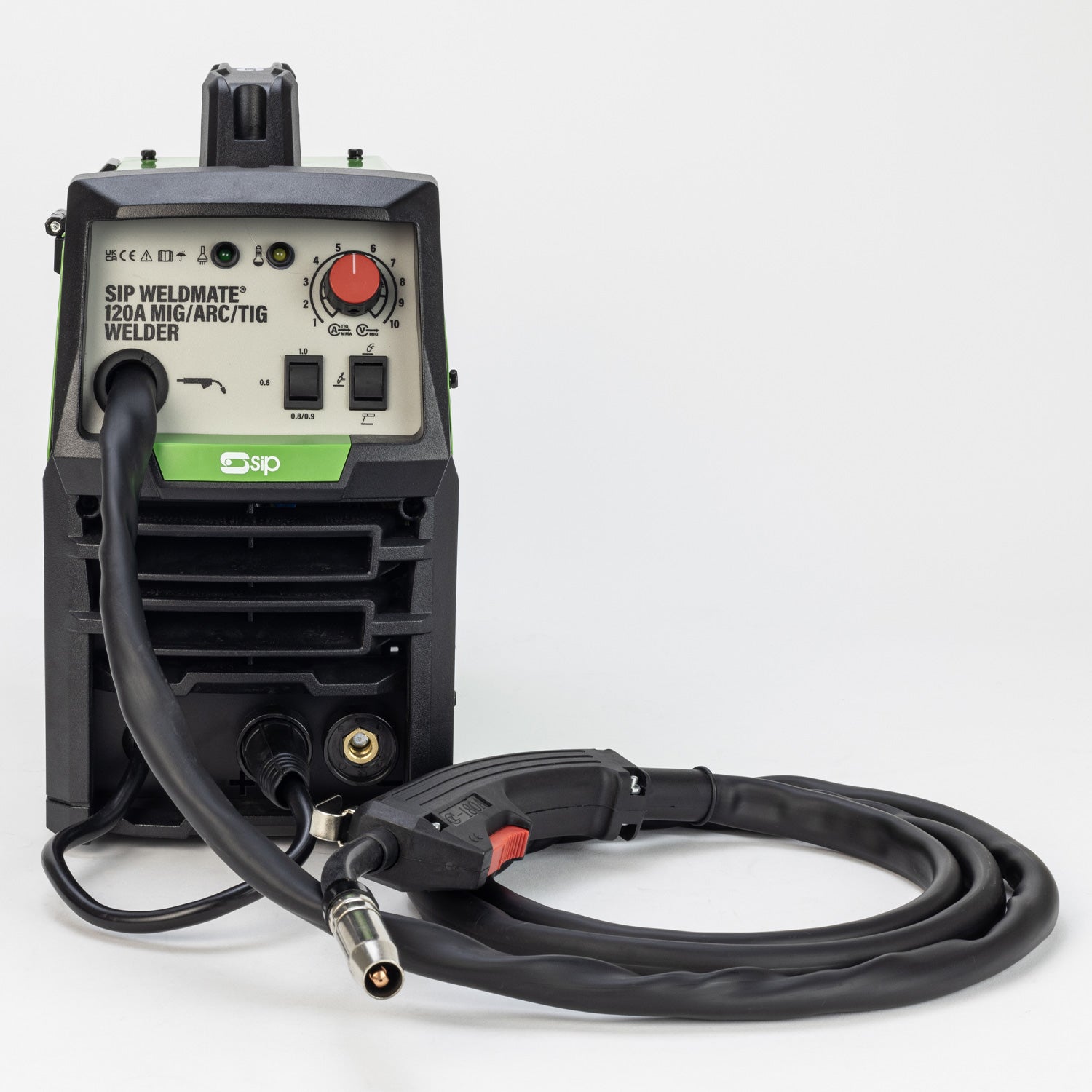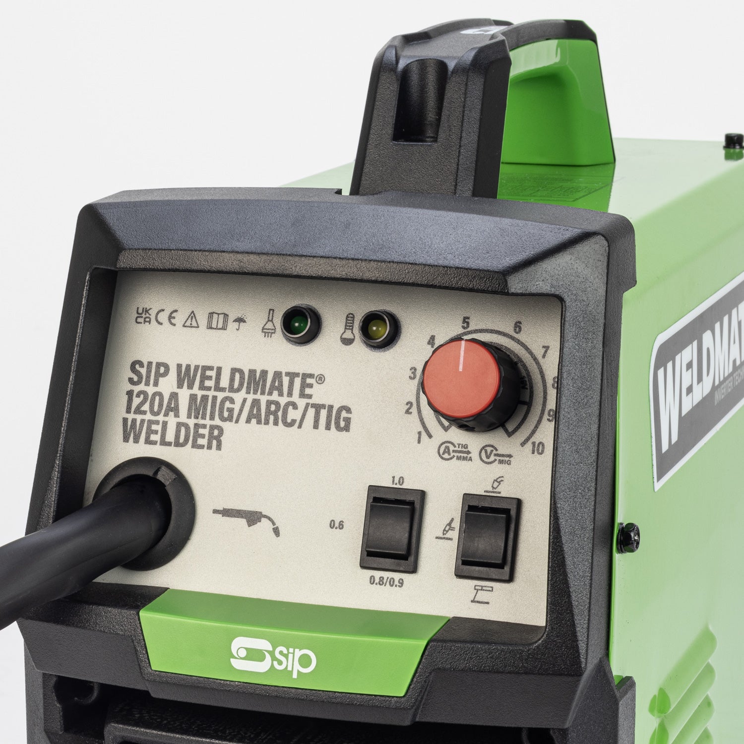 The SIP WELDMATE® 120A MIG/ARC/TIG Welder is a multi-process inverter welder specifically designed for entry level users and small workshop applications.