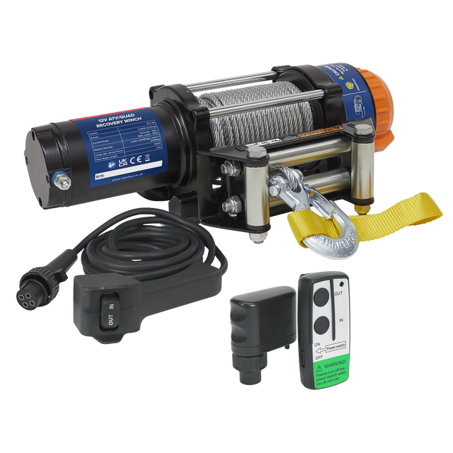 - Powerful 12V ATV/Quad Recovery Winch with an impressive 2040kg (4500lb) line pull capacity, perfect for heavy-duty recovery tasks.