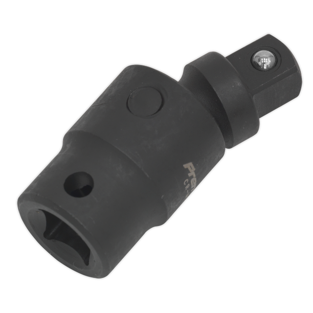 Drop-forged steel universal joint. Suitable for use on all types of air impact tool. Chrome Vanadium steel with phosphate finish for added corrosion resistance. Spring-ball socket retainer and drilled head to accept retaining pin.