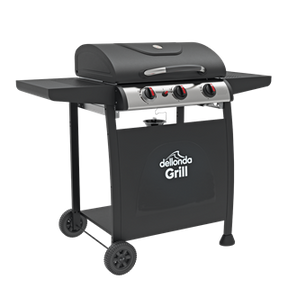 Gas BBQ with three stainless steel burners. Built-in thermometer enables you to easily keep track of your cooking temperature. Piezo ignition ensures a safe and easy start-up every time. High quality steel cooking grates with a gloss enamel coating. Features two side shelves giving extra room for preparation. Warming rack frees up space on the grill whilst keeping your food warm after cooking. Supplied with regulator and hose assembly for use with propane patio gas bottles. Features two 6" polyurethane wheels for easy manoeuvrability. Product Size (W x D x H): 1220 x 570 x 980mm. Some simple assembly is required. Dellonda BBQ Cover Model No. DG19 (supplied separately) is a perfect fit for this BBQ.