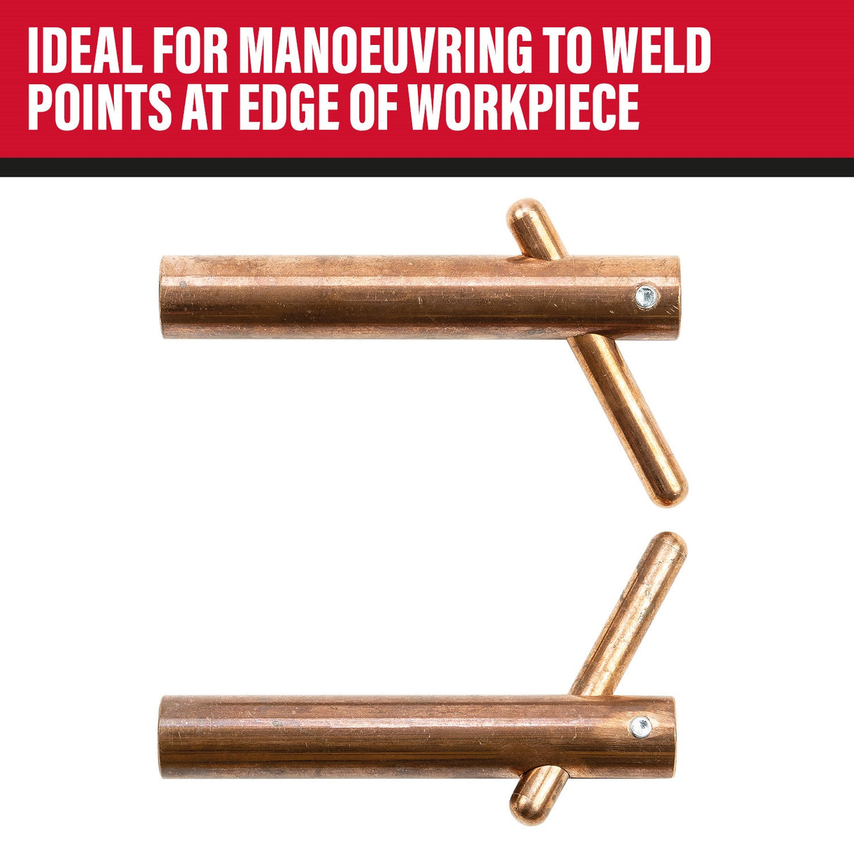Ideal for accessing and manoeuvring to weld points at the edge of the workpiece, offset arms help improve dexterity at challenging angles for easy and accurate placement of the weld.