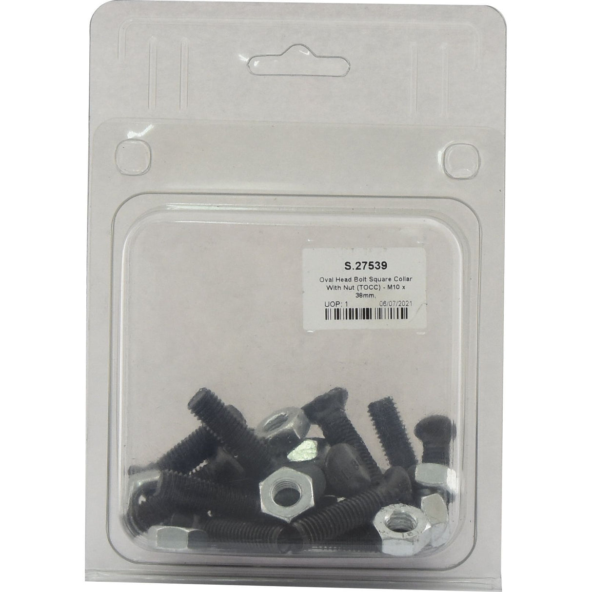 Product Title: Oval Head Bolt Square Collar With Nut (TOCC) - M10 x 38mm, Tensile Strength 8.8 (15 pcs. Agripak) | Sparex Part No. S.27539