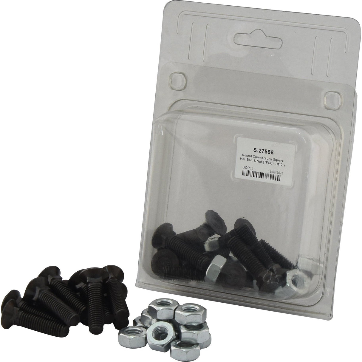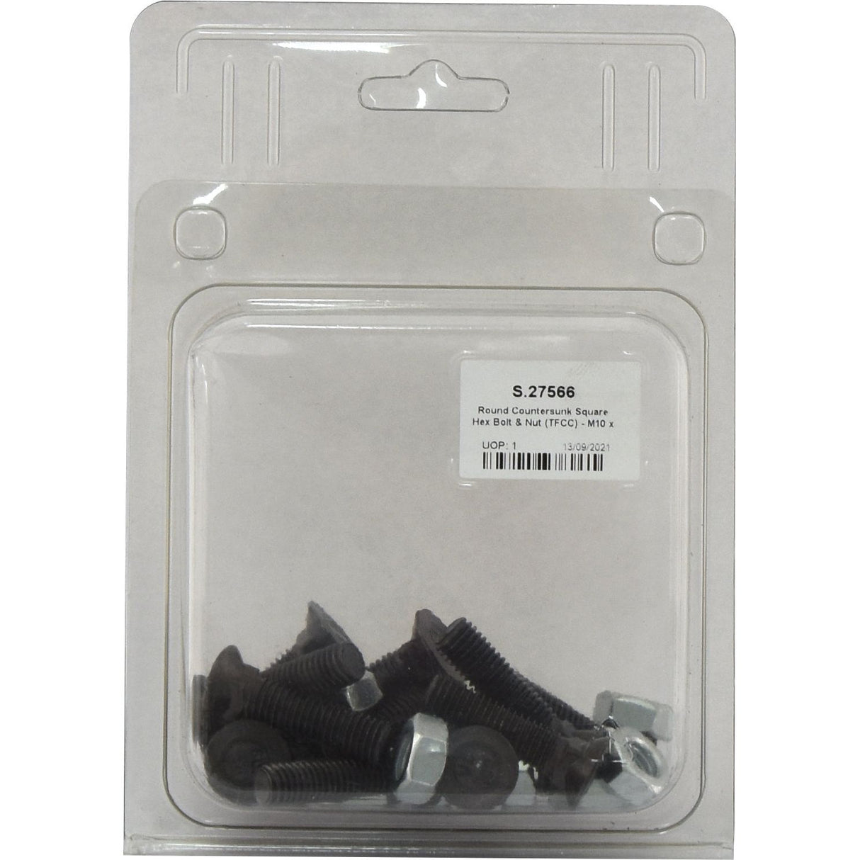 Round Countersunk Square Hex Bolt & Nut (TFCC) - M10 x 40mm, Tensile strength 8.8 (12 pcs. Agripak) | Sparex Part No.S.27566 0.45 kg
