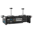 Fitted with leaf spring support bearings for easy glide transversing the ram. Shut off valves allow twin or single ram lifts. Air operation takes the effort out of lifting heavy plant, tractors and commercial vehicles. Rocket lift feature brings the saddle into contact with the jacking point quickly and slows once under load for a controlled lift. Fitted with deadman controls and a limited descent control valve. Manufactured to suit pit widths between 680-960mm. Large handle for moving the frame, air coupling and water separator and spare parts tray/tool tray with rubber mat insert.