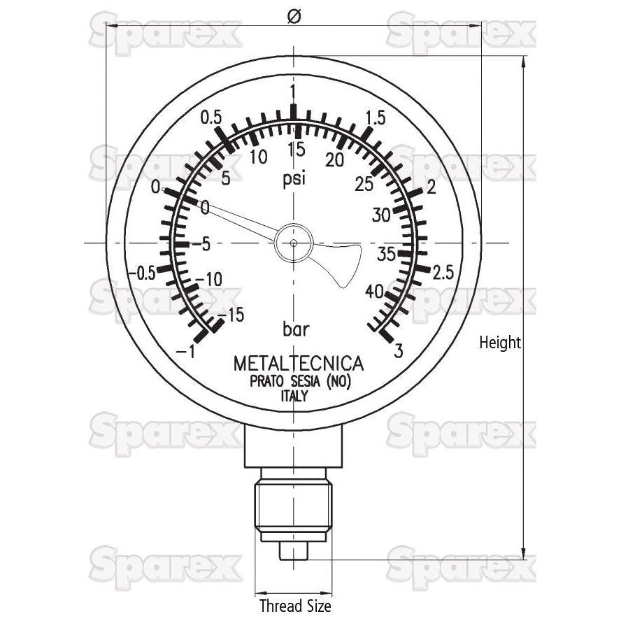 Glycerin Pressure Gauge 1/4'' (-1/+3 bar) | Sparex Part No. S.59480