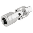 Expert Quality, manufactured from chrome vanadium steel hardened and tempered with a polished finish. Head swings through 90° in both directions. Spring - loaded ball bearing for secure socket holding.