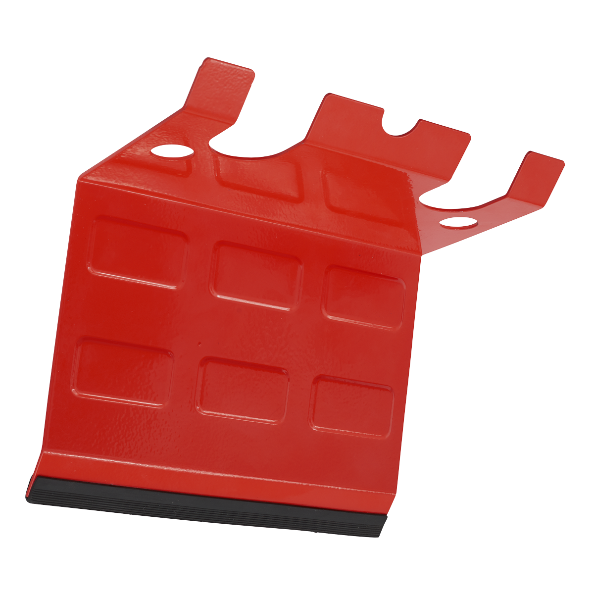 Securely stores two spray guns without sliding or tilting, even when storing a single spray gun. Six heavy-duty magnets are used to attach the spray gun holder to any magnetic surface like spray booth walls, toolboxes and more. PVC covered magnets and silicone bumper prevent scratching the mounting surface. Suitable for use with gravity and suction feed spray guns. Centre notch can be used to hang an air hose while not in use.