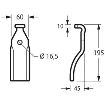 Rotavator Blade Straight - 60x10mm Height: 195mm. Hole centres: Hole Ø: 16.5mm. Replacement for Pegoraro To fit as: 006955 | Sparex Part No.S.77565 0.82 kg